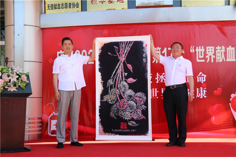 今天我们汇聚在一起,除了共同庆祝第17个“世界献血者日”还见证了爱心人士陈旭先生将拓迹作品“爱心永恒”捐赠给山西省血液中心这一善举。山西省卫生健康委医政医管局四级调研员牛晓辉主任向陈旭先生颁发荣誉证书。