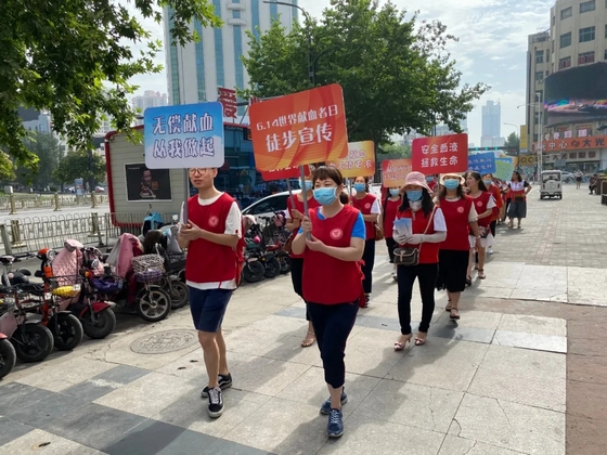 6月14日上午,咸阳市中心血站联合咸阳市红十字会,组织近百名志愿者进行了6.14街头徒步宣传无偿献血活动,呼吁更多爱心市民奉献热血挽救生命。