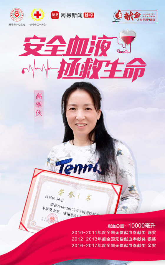 无偿献血21年 爱心带动身边人--蚌埠市无偿献血先进人物高翠侠