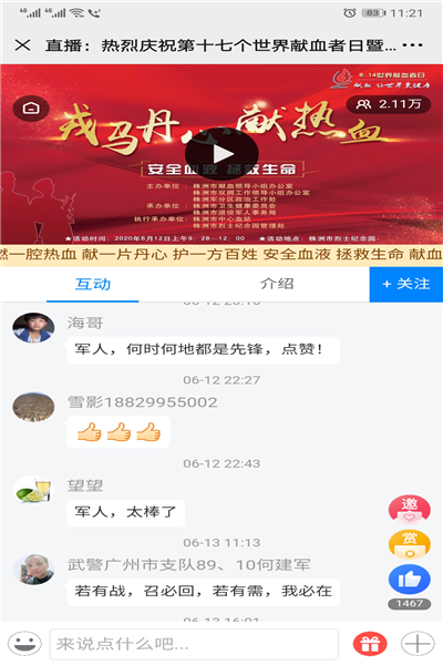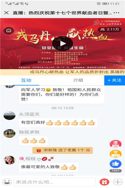 活动中,现、退役军人以热血守卫人民,以忠诚护佑国家的军人精神,受到了广大群众的欢迎和好评。活动得到了大家传颂,市民纷纷转发朋友圈,为军人的奉献精神和株洲无偿献血事业点赞!