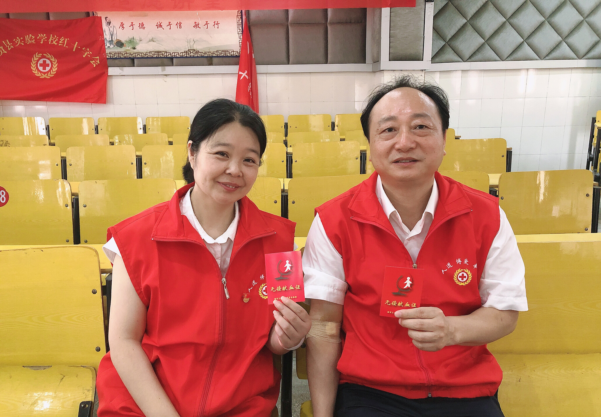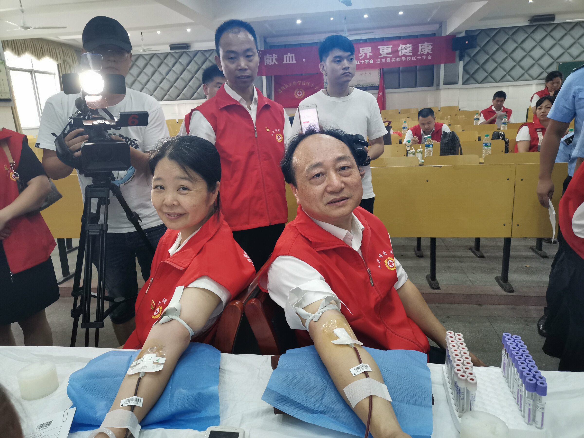 进贤县红十字会的工会主席徐贤玲和进贤县实验学校的校长唐卫东率先带头献血。