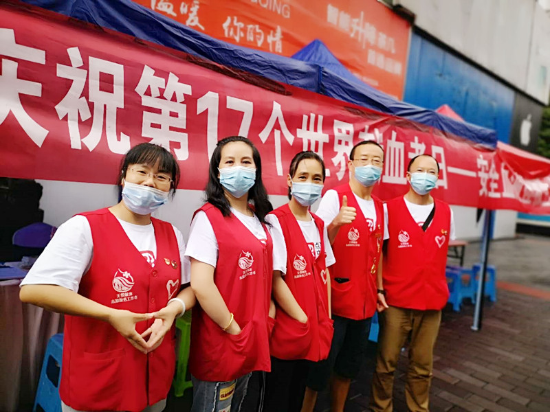 活动现场,我们看到一个个穿着白大衣、佩戴党徽的党员职工和身着红色马甲背心的无偿献血志愿者们,他们热情、耐心地为每一位献血者和前来咨询的群众服务,他们有的向过往市民发放宣传资料,有的为现场群众答疑用血政策,有的在“一对一”指导献血者填写登记表,还有的在专业地为群众提供免费测量血型、血压等便民服务……,他们不断重复着讲解、说明、引导、拍照留念、送别等动作,展示着志愿者“奉献、友爱、互助、进步”的服务精神和风采,在活动的每一个环节,都有他们忙碌的身影。