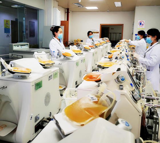 血液成分制备,就是将人们献出的一袋袋全血中的红细胞、血浆、冷沉淀凝血因子等有效成分通过高速离心、分离等一系列专业技术,最终制备成高浓度、高纯度的血液制品。它们的作用各有不同,可以更有针对性地输给不同需求的患者,为更多家庭带去温暖与希望,从而也减少了输血者在用血过程中产生的过敏反应,使生命更健康。