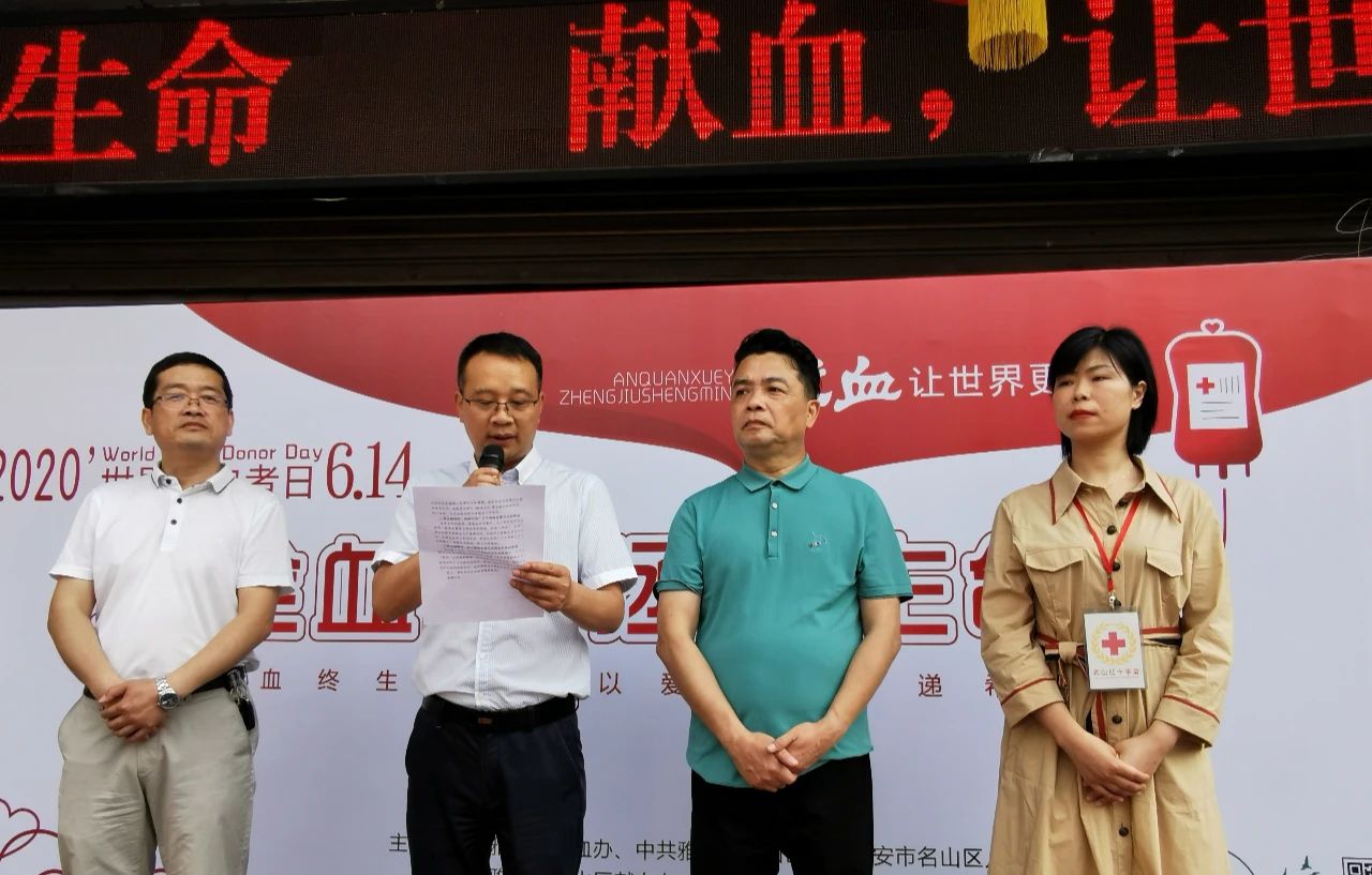 爱在6.14公益无偿献血活动走进名山区专场,名山区高度重视,落实专人负责此次活动的宣传动员和组织协调工作。名山区区委常委、总工会主席陈曦出席活动并致辞,活动对10位名山区2017—2019年献血先进个人进行表扬,为他们颁发了“无偿献血爱心天使”的荣誉证书和奖杯。名山区领导率先垂范挽袖献血,在领导带领下,名山区社会各界人士踊跃献血,当天,累计184名无偿献血者献血,共计采血52800毫升。