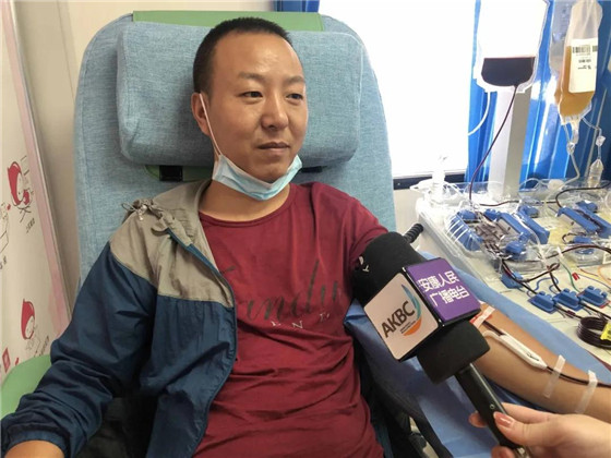 在市中心广场的献血屋,我们见到了正在献血的郭斌,多年来他把献血当做了自己的爱心事业,累计献血量达到27800毫升,获得3次全国无偿献血奉献奖金奖。