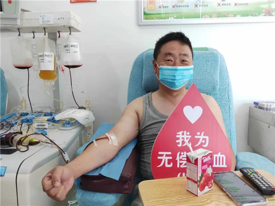 冯洪涛说:“今天抽空过来献了2个单位的血小板,我全血已经献了10次,血小板是第22次,现在献血已经成为了我生活中一种习惯,奉献爱心让我充满了力量。”