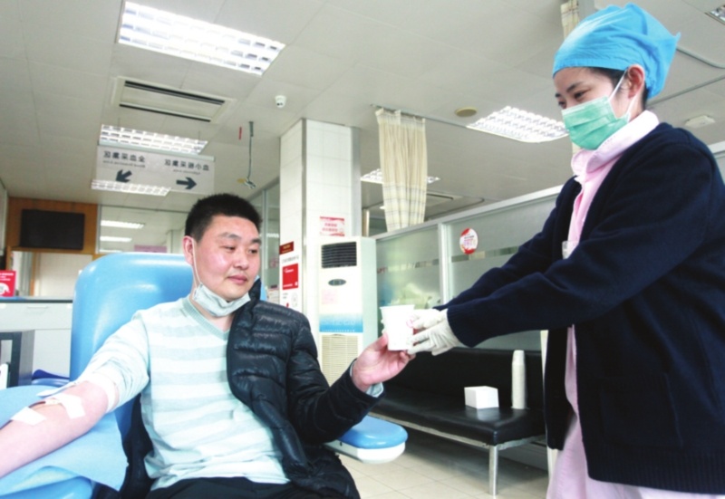 2019年,市中心血站继续在献血者中推广水负荷法,在献血前给每位献血者准备一杯电解质温水,指导献血者进行专业的肌肉张力活动,有效缓解献血者的紧张情绪,减少献血反应的发生和程度。每一杯电解质特饮都是血站工作人员现场调制递到献血者手中,良好的口感、暖暖的温度都让他们真正感受到贴心的关怀。