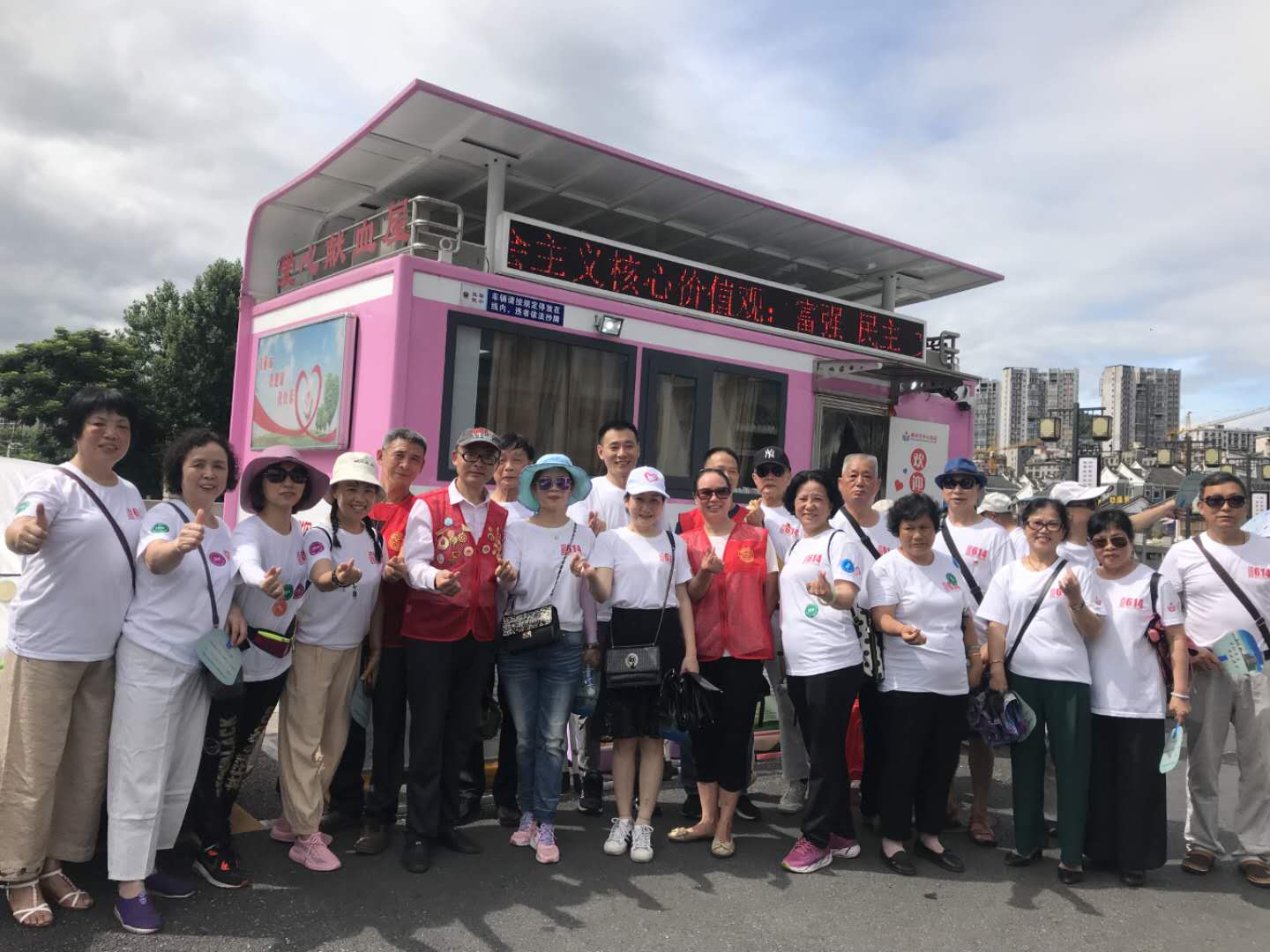 (志愿者们在裕后街献血点打卡合影)