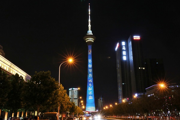 世界献血者日点亮天津 谢谢你给予生命的礼物