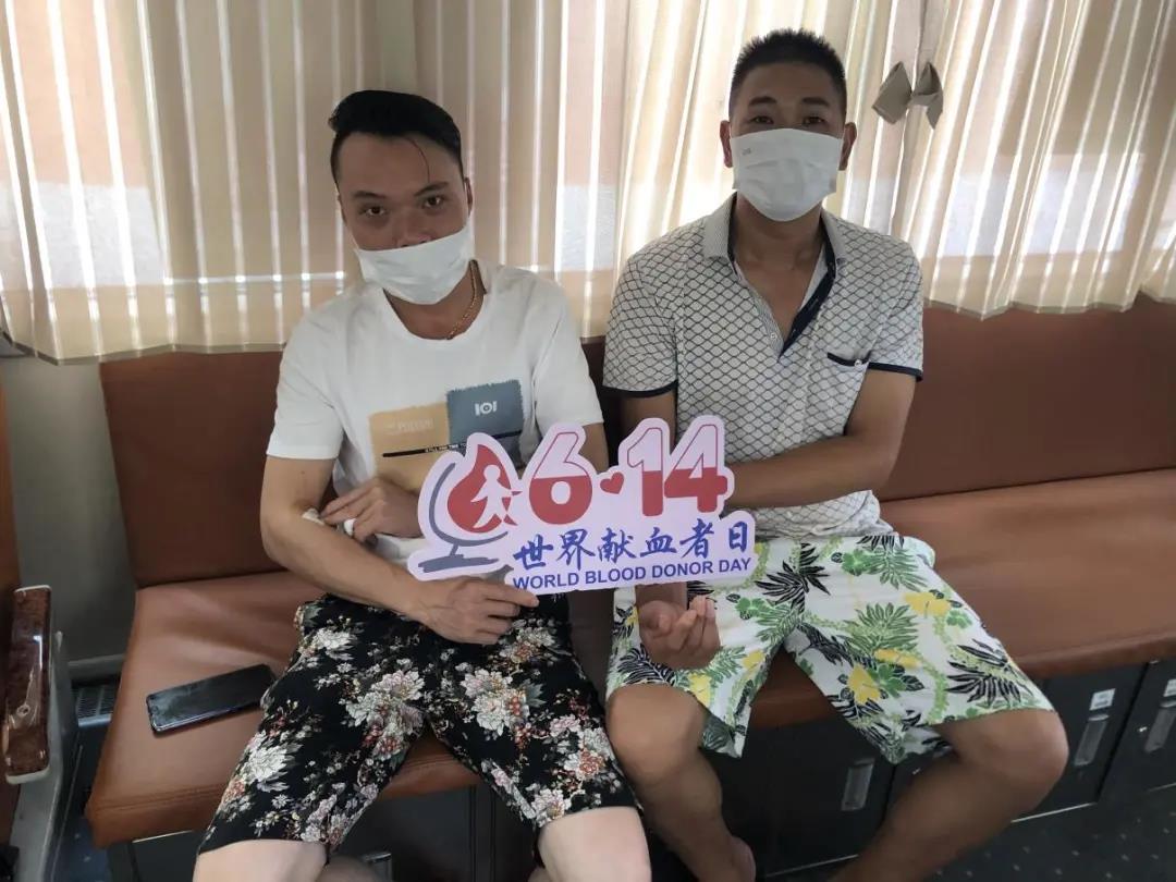 好兄弟彭旭、王礼顺一起组团来献血,两人体检合格后二话没说分别献血200ml。