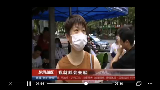 海南省妇产科医院护士何英妮也在当天来到现场奉献爱心。每年都会参加医院献血活动的何英妮表示,作为医务工作者更有责任和义务为在医院中等待救治的患者出一份力。同时她还呼吁爱心市民们积极伸出手臂,勇于奉献,用热血为生命加油。