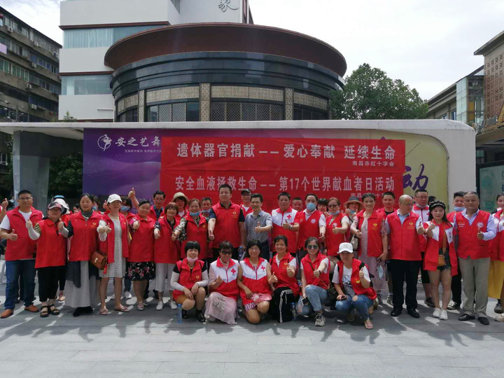 2020年6月14日是第17个世界献血者日,为了大力宣传和弘扬无偿献血者的奉献精神,鼓励更多适龄健康人加入到无偿献血行列,南昌市中心血站联合南昌市红十字会在西湖区盈石广场开展“血液让世界更健康”主题宣传活动。南昌市无偿献血和造血干细胞捐献志愿服务队、南昌市雄鹰救援队的志愿者50余人参加活动。