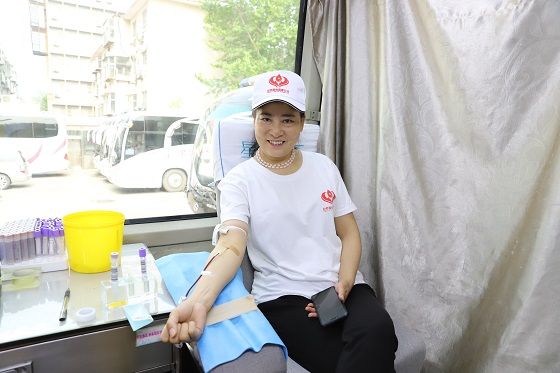 采血位上满脸笑容的李道梅是安然纳米公司的销售人员。看到如此轻松的表情,就知道她一定不是第一次献血。交谈后了解到李道梅一直都想参加无偿献血,2019年公司第一次组织献血活动的时候就积极报名,很高兴自己的愿望终于实现了。今年作为献血“过来人”出现在献血车上,已经52岁的她在了解到自己献血年龄可以延长到60周岁,开心溢于言表。“趁着我现在还有机会去奉献,我很骄傲”李道梅笑着说。