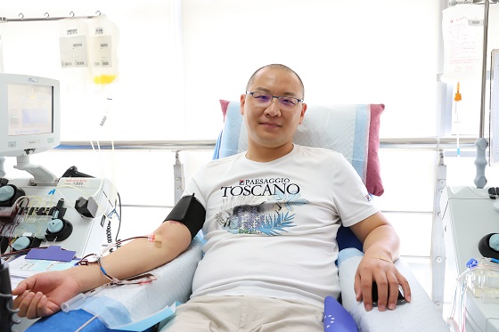 这次献血活动,安然纳米公司里有一个员工和其他人做了不一样的举动,他就是来自公司的销售人员冯艳杰。1996年在部队的时候冯艳杰就开始了他的献血之旅,一直坚持到现在。就在前两天收到了中心的短信,才了解到献血是有两种形式的,全血和血小板采集,正好赶上公司组织献血活动,就提前一天预约了成分献血,和同事们一起奉献爱心。