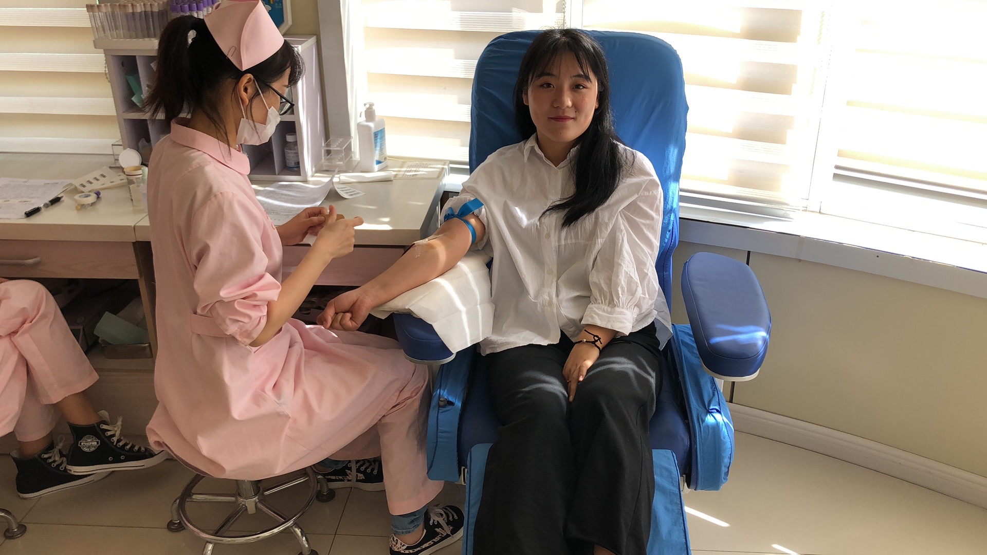 周琳琳说,她很早就有献血的想法了,让自己的血液在他人身上延续生命,这是她18周岁这一年最好的纪念,恰逢6.14世界献血者日,双重纪念,双重意义,以后的每一年世界献血者日,她也都会继续参加无偿献血,并且要带动自己的亲朋好友,共同参加到这样的无私奉献的活动中来。面对采血针,她没有18岁小姑娘的那种怯懦,而是表现的毫无畏惧,笑得阳光灿烂,这个年仅18岁的女孩儿,用真诚感染着身边的每一个人。 献血结束,拿到献血证的她无比激动和自豪,她说这是她做过的最有意义的一件事!
