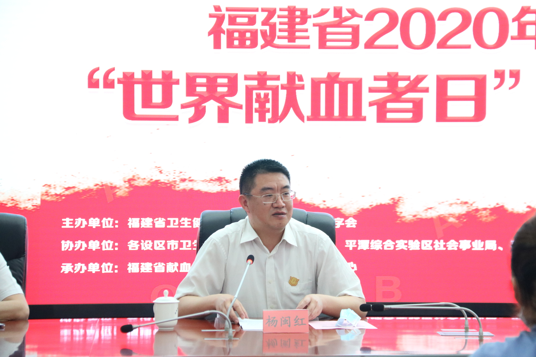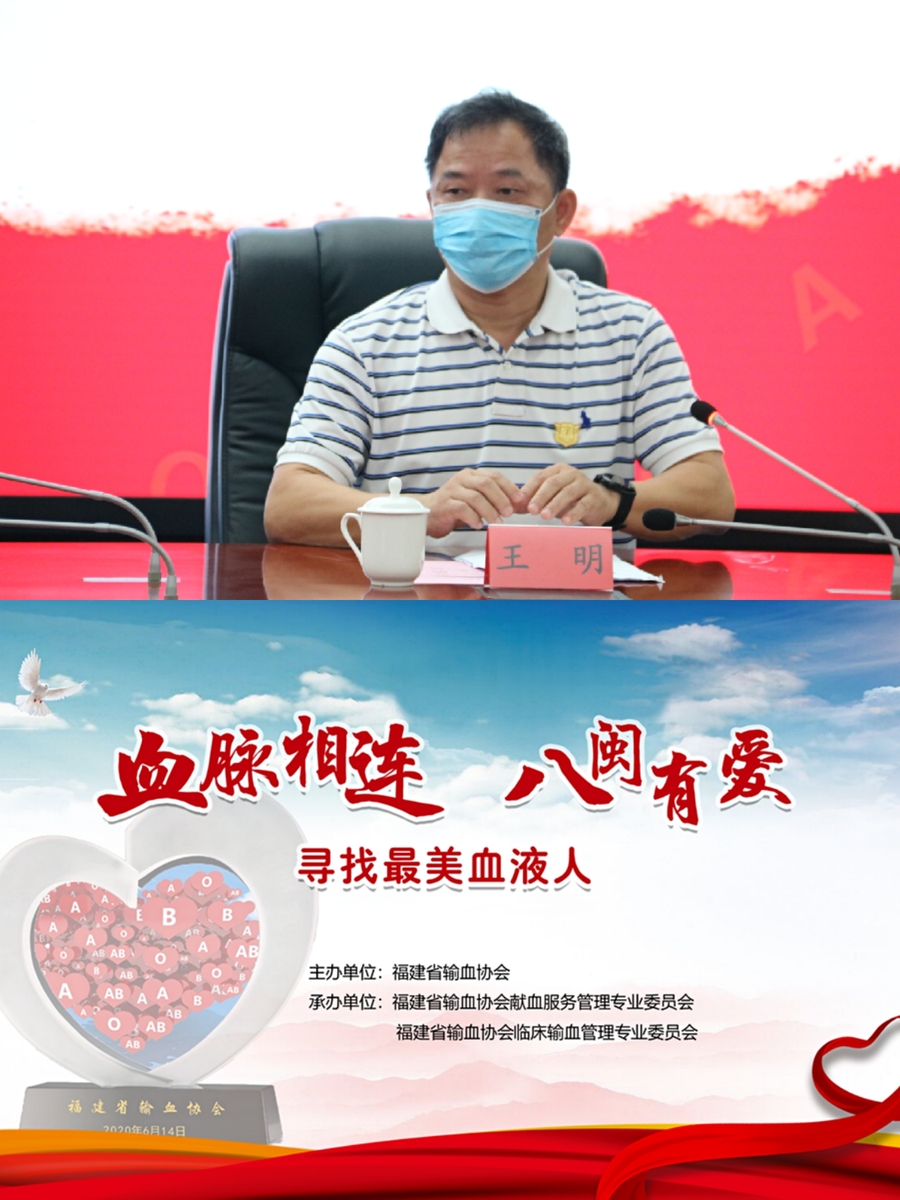 福建省卫生健康委员会党组成员、副主任杨闽红,福建省红十字会党组成员、专职副会长徐祥,福建省献血工作办公室负责人、省卫健委医政处处长张国安,福建省血液中心党委书记、主任、福建省输血协会理事长王明出席视频会议,同时还邀请了团省委、省直团工委、各大医院代表,福建省无偿献血宣传员,无偿献血者代表,“最美血液人”代表参加本次会议。