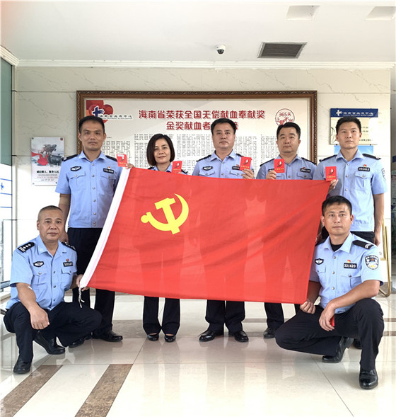 6月12日,海口出入境边检总站马村边检站执勤三队党支部7名党员自发来到海南省血液中心,用热血展示党员风采。