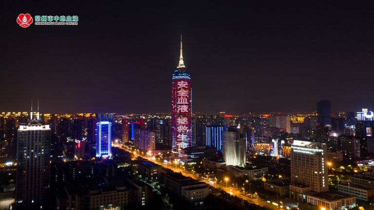 常州现代传媒中心“玉米楼”、江南环球港邮轮酒店、紫荆公园摩天轮纷纷打出了“献血,让世界更健康”“614,谢谢您——致敬献血者”“安全血液,拯救生命”的口号,常州三大地标亮灯,为全市献血者送上最珍贵的礼物。