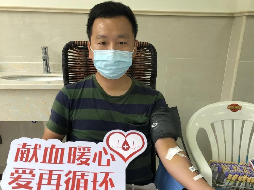 程欢体检合格后,他二话没说伸出臂膀献血400ml,这是他第5次无偿献血了。