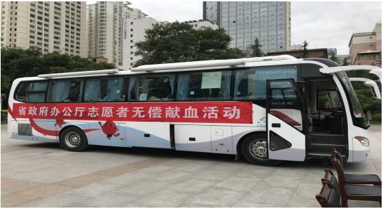 6月19日上午9时许,省红十字血液中心的爱心献血车开进省政府办公大院。献血车刚刚停稳,省政府办公厅参加无偿献血的党员志愿者们就陆续来到献血车前,大家认真听取医务人员讲解献血注意事项后,纷纷拿起笔,认真填写表格、登记信息、测量血压、血液初筛、在初筛合格后井然有序地开始献血。此次活动,省政府办公厅共有60名志愿者报名参与,成功献血31名,共献血6700毫升。他们用实际行动树立了人民公仆无私奉献的良好形象,展现出省政府机关工作人员心系群众的社会责任和大爱担当。经过片刻休息,大家又继续投入到各自紧张又忙碌的工作中。