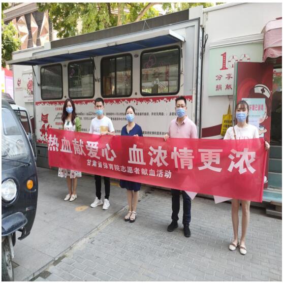 6月20日上午10:00,甘肃省保育院部分教职工赴张掖路献血车志愿献血,将无偿献血作为创建“让党中央放心、让人民群众满意”文明单位的实际举措,圆满的完成了此项工作。