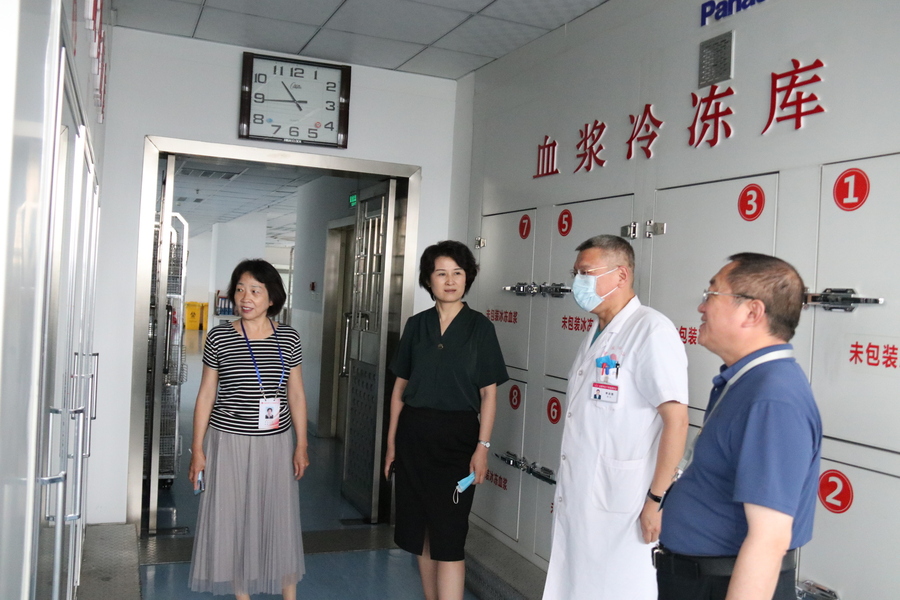 随后,在中心党委班子的陪同下委工委副书记蒋亚南一行来到中心荣誉室、科普教育基地及各业务科室,实地查看了血液的采集、制备、检验、储存等相关科室,详细询问了新冠疫情防控下我中心防疫保障、采供血工作及新冠肺炎恢复期血浆采集等情况,对我中心在采集新冠肺炎康复者恢复期血浆,救治新冠肺炎重症患者给予了高度的肯定,并慰问了抗疫一线的医护人员,对他们在疫情面前勇于担当、甘于奉献表示了感谢。