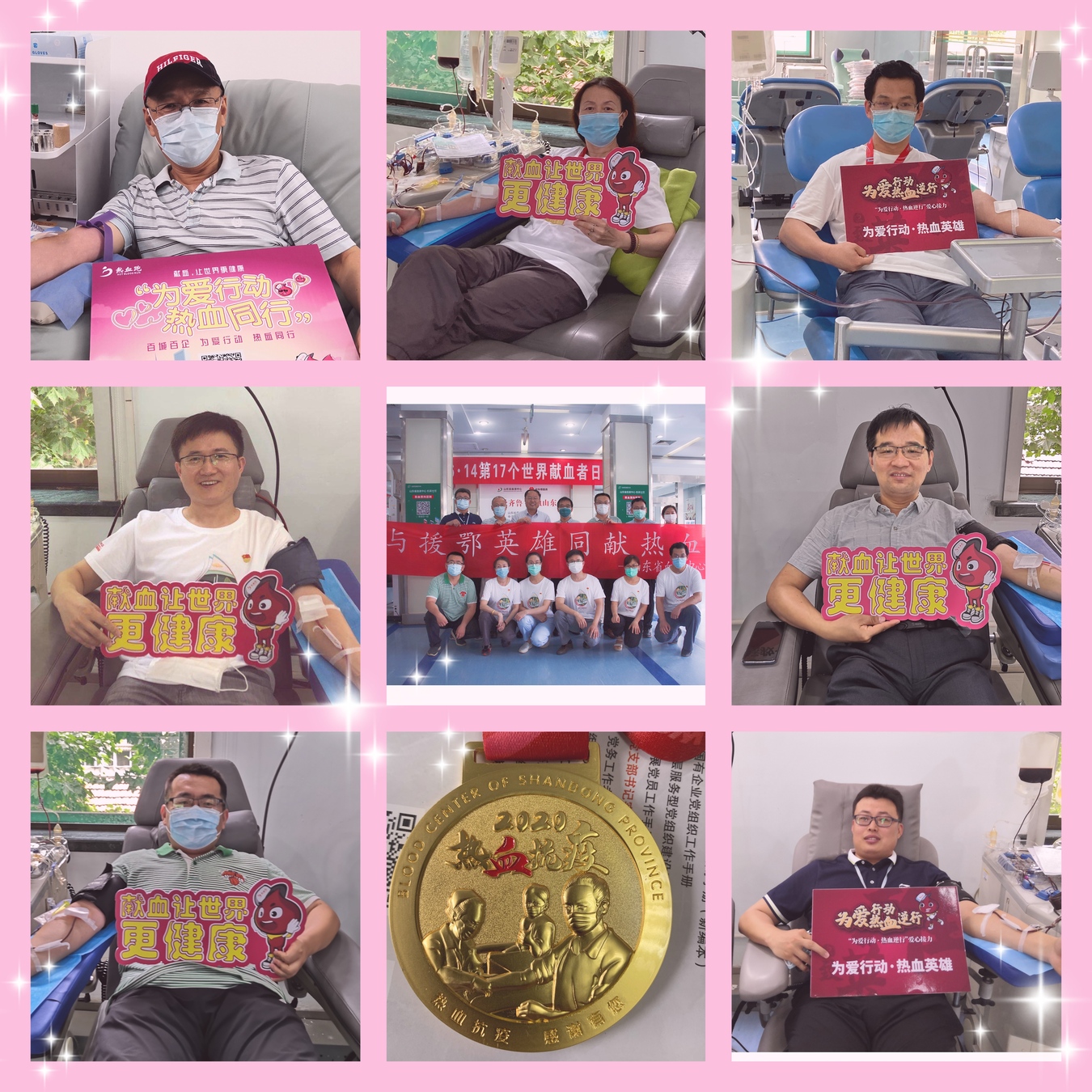 启动仪式上,张新童主任动情地对队员们说,在荆楚大地,你们战疫情,以无畏的勇气践行了疾控人的神圣使命;在齐鲁大地,你们再次用行动彰显责任与担当,谢谢你们对无偿献血的支持。在第17个世界献血者日来临之际,愿更多的人能够以你们为榜样,奉献青春热血,用爱心为生命加油。随后,张主任为参加献血的6位援鄂英雄颁发热血战“疫”奖牌。业务三支部支部书记陈富强、支委张谦、党员刘虹一起参与无偿献血。