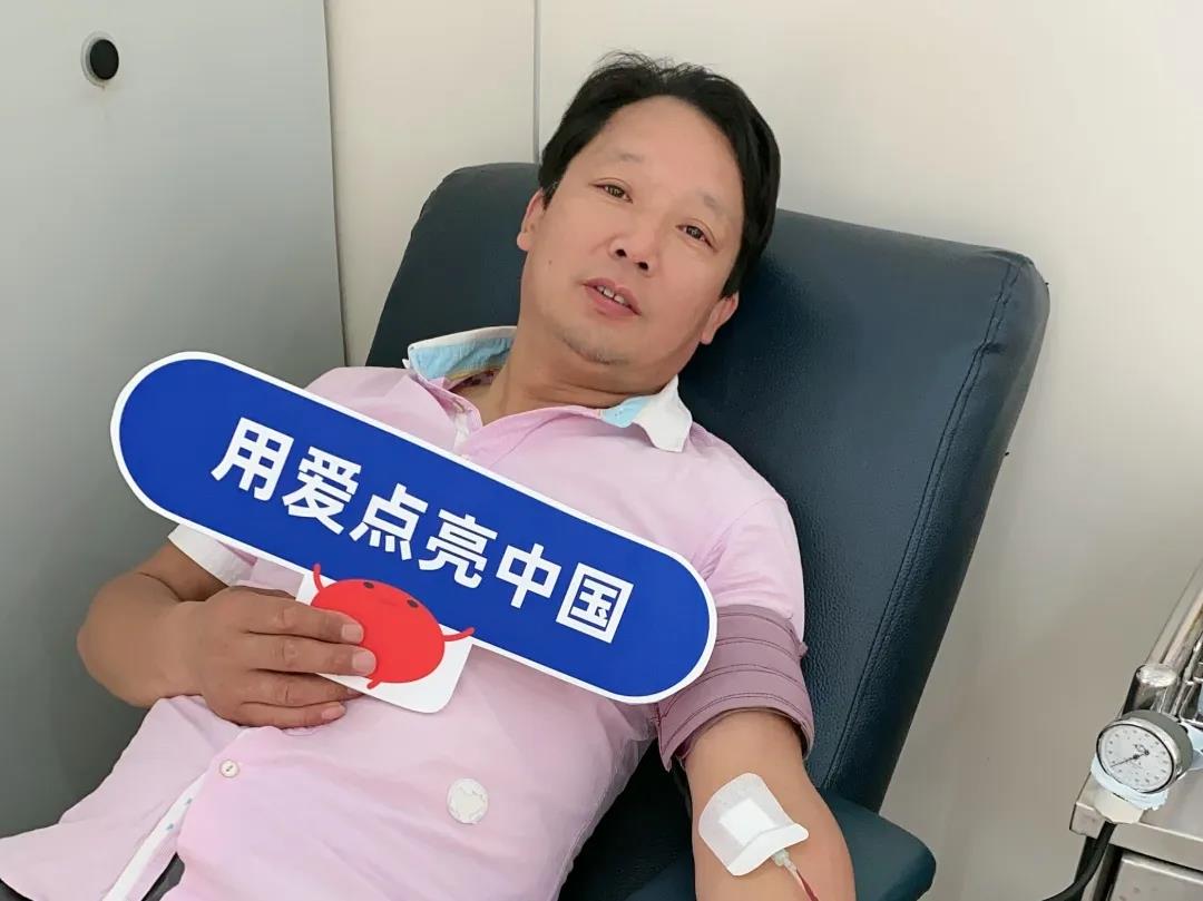 无偿献血者:沈太明,浙江省嘉兴市嘉善人,漕宝爱心献血点的固定无偿献血者。端午节当天从嘉兴西塘驱车2个半小时赶来献血,从2006年至今风雨无阻,已累计献血19次,共计7200ml全血。