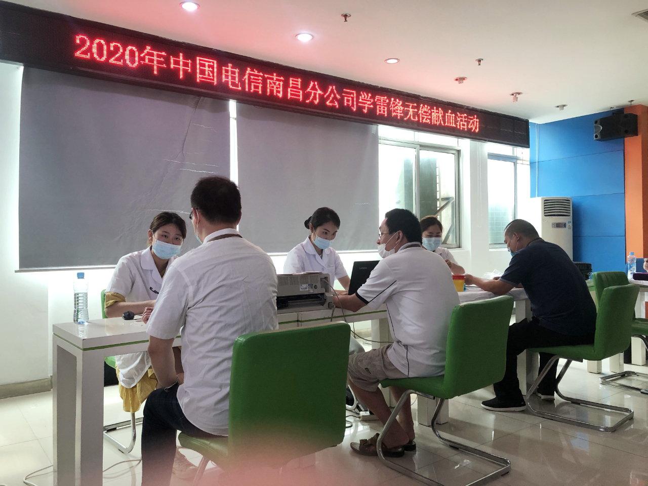 为了庆祝即将到来的七一建党日,南昌市中心血站携手中国电信南昌分公司开展无偿献血活动。