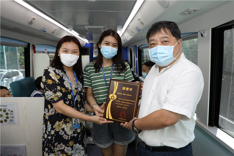 深圳市血液中心朱为刚主任前往活动现场,感谢腾讯志愿者团队持续多年的组织无偿献血活动。