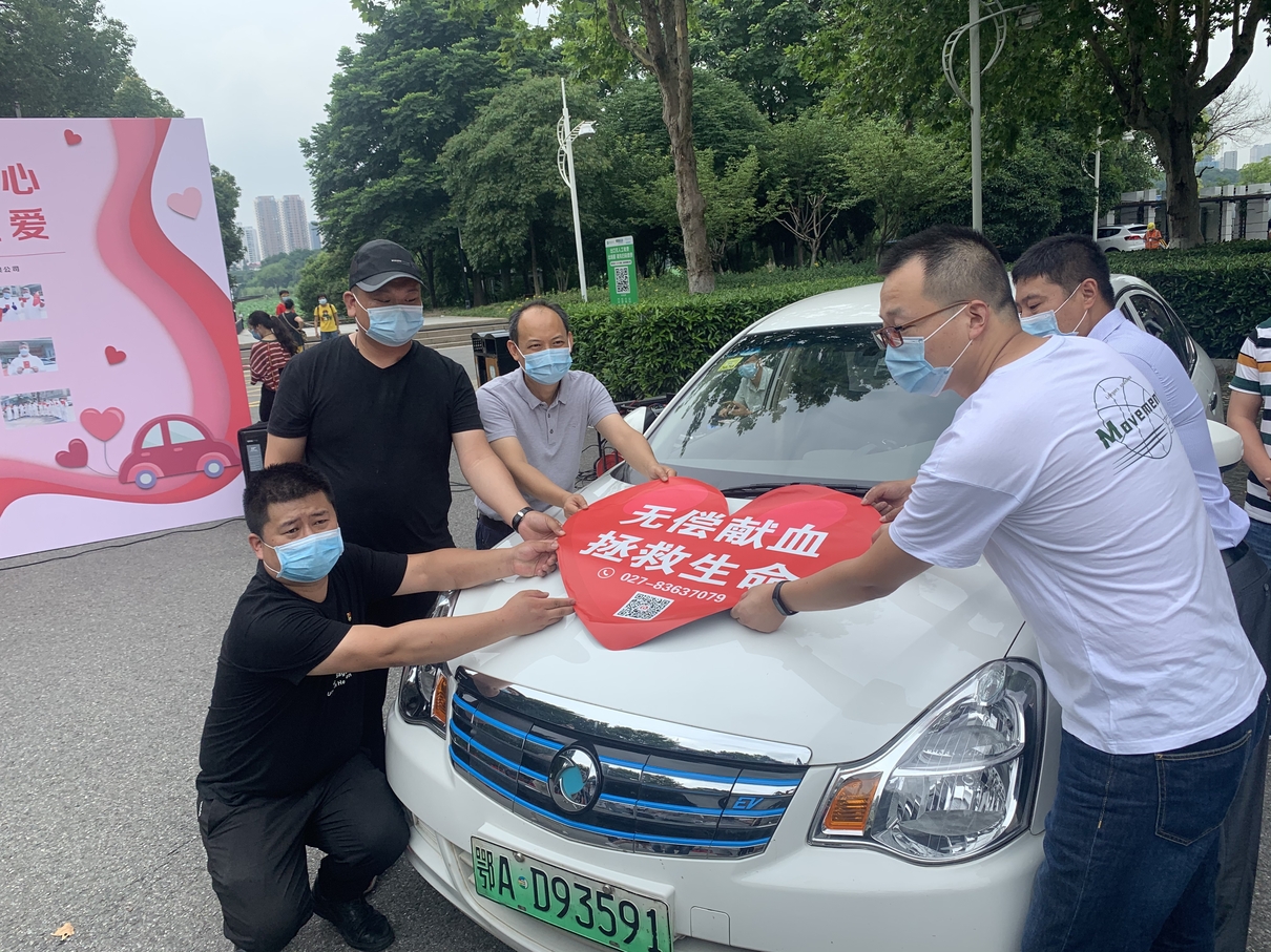 于是,在程科意等爱心司机的倡议下,武汉血液中心和滴滴出行、武汉时一汽车服务有限公司进行合作,在百台车辆的引擎盖和椅背上开辟出“无偿献血广告位”,进行“一对一”的无偿献血宣传。6月19日上午,近百位爱心司机集体开着车来到活动现场,统一安装爱心宣传车贴。