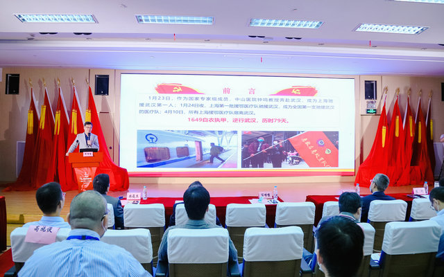 表彰会后,中心党委书记邹峥嵘以《党旗飘扬,党徽闪耀;驰援武汉,共同抗疫》为题讲授了一堂生动的党课。他围绕“基本情况”“主要工作”“感悟体会”3个方面,以自己的亲身经历,讲述了1649名上海援鄂医疗队员白衣执甲、逆行武汉、抗击疫情的感人故事,他们把人民群众的生命安全放在首位,舍小家为大家,日夜奋战、救死扶伤,践行了共产党员的初心使命,诠释了白衣战士的家国情怀,诠释出医者仁心、大爱无疆的崇高精神。一张张图片、一段段经历,直击人心,让广大党员干部深受感动。