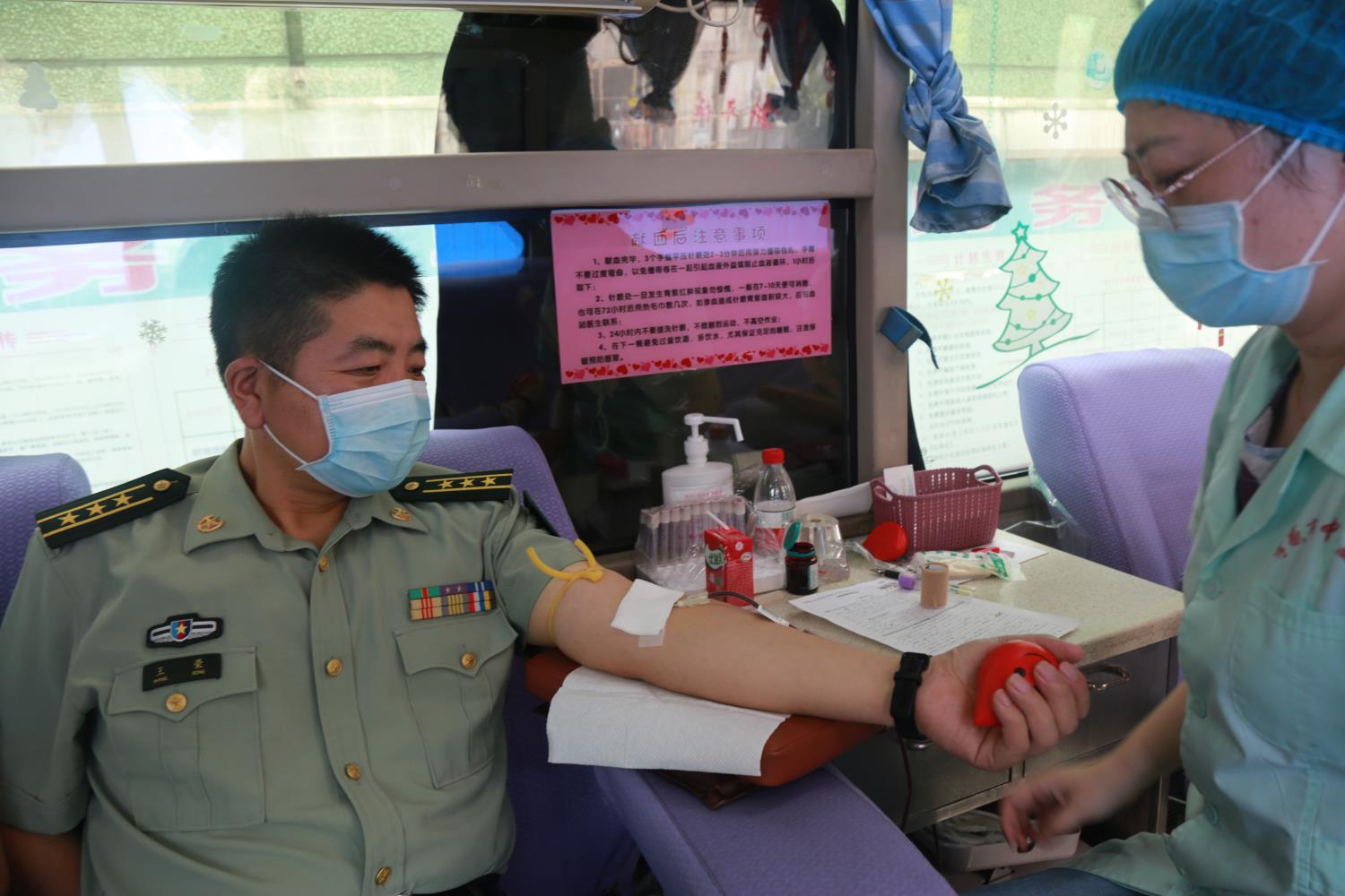 上午9时,献血车开进陡山乡政府,恰巧孝昌县委常委、人武部政委王荣在陡山乡主持会议,会议结束立即登上采血车参加献血,为大家做了表率。王政委表示,无偿献血是拯救生命的公益事业,国家工作人员及军人应该带头献血。