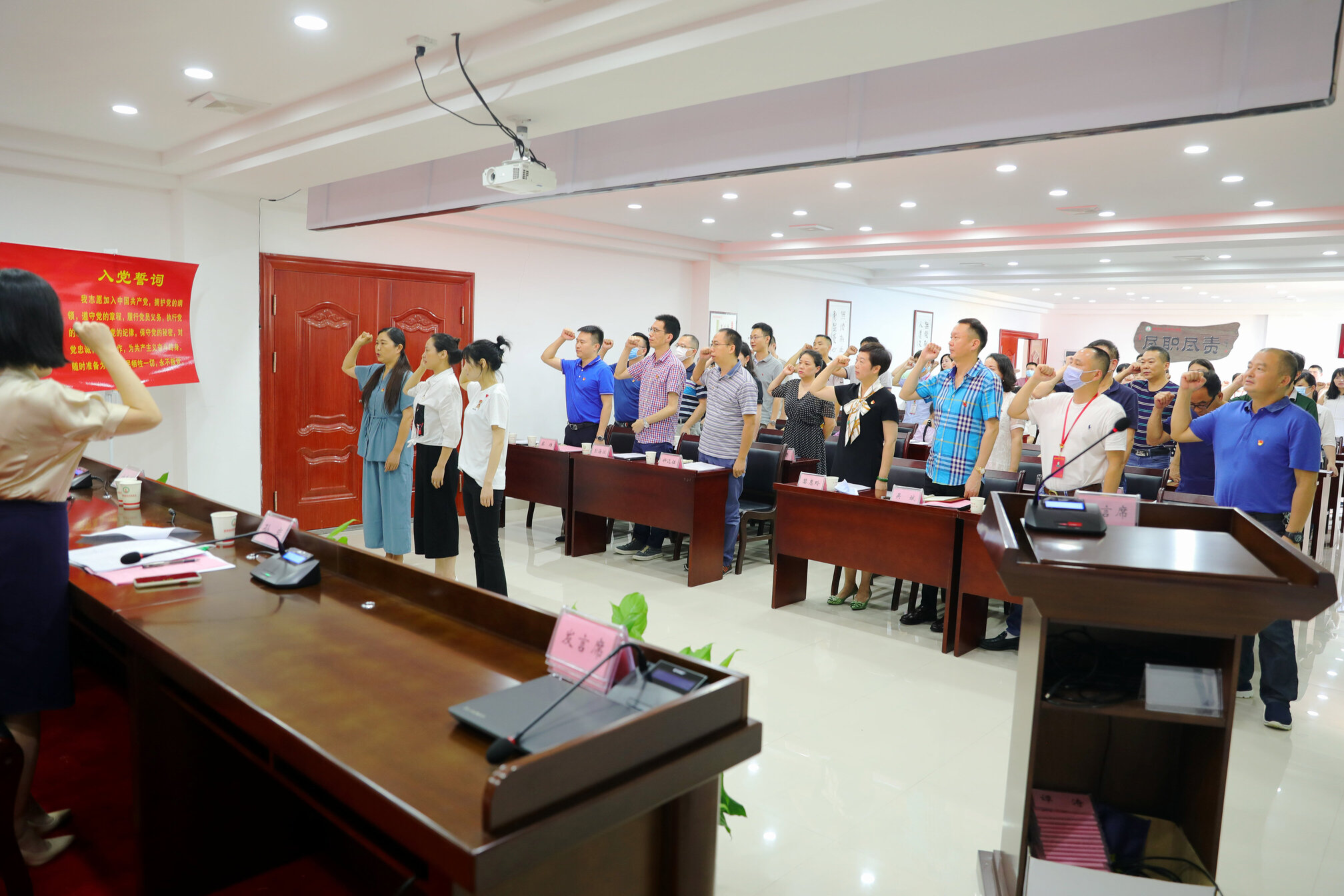 大会在庄严的国歌声中拉开序幕,新党员宣誓,全体党员重温入党誓词,对一批优秀共产党员、优秀党务工作者、先进党支部、抗击疫情先进典型和“学习强国”学习先进个人进行了表彰,并号召全体党员干部职工学习先进、争当先锋、争做先行,推进 “不忘初心、牢记使命”主题教育常态化开展。会议同时部署了血站党委开展“三表率一模范”政治机关创建活动和“一名党员一面红旗”实施方案。