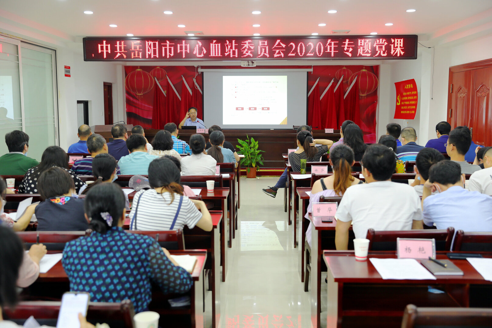 市直机关工委书记李桂华教授以《中国共产党99年的光辉历程与建党执政经验》为题,血站党委书记、站长方奎明以《从新中国到新时代:民族复兴的道路自信》为题,分别为血站党员干部讲了一堂内容生动的党课。