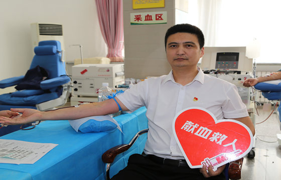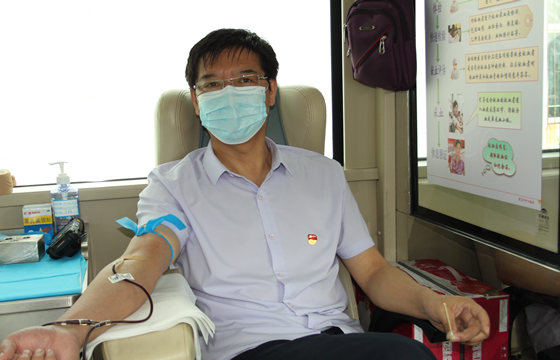 市交通投资集团有限责任公司工会主席、党办主任孙守相在“七一”当天也走进血站,用献血的方式庆祝党的生日。