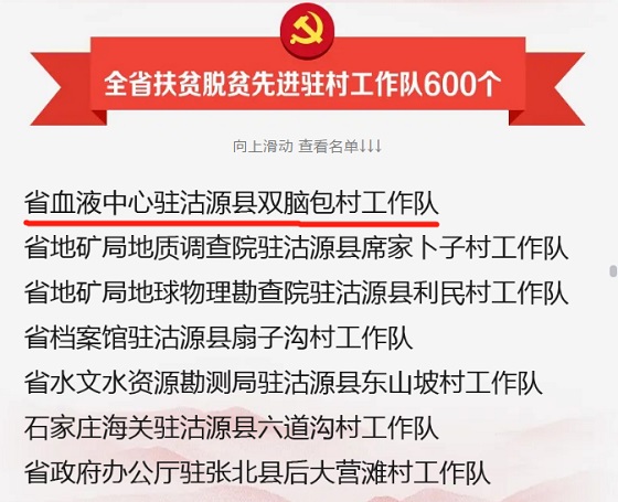 省血液中心从2015年开始承担驻村扶贫任务,2017年3月承担沽源县平定堡镇双脑包村帮扶任务,并先后选派两任支部书记累计5名同志在双脑包驻村工作。