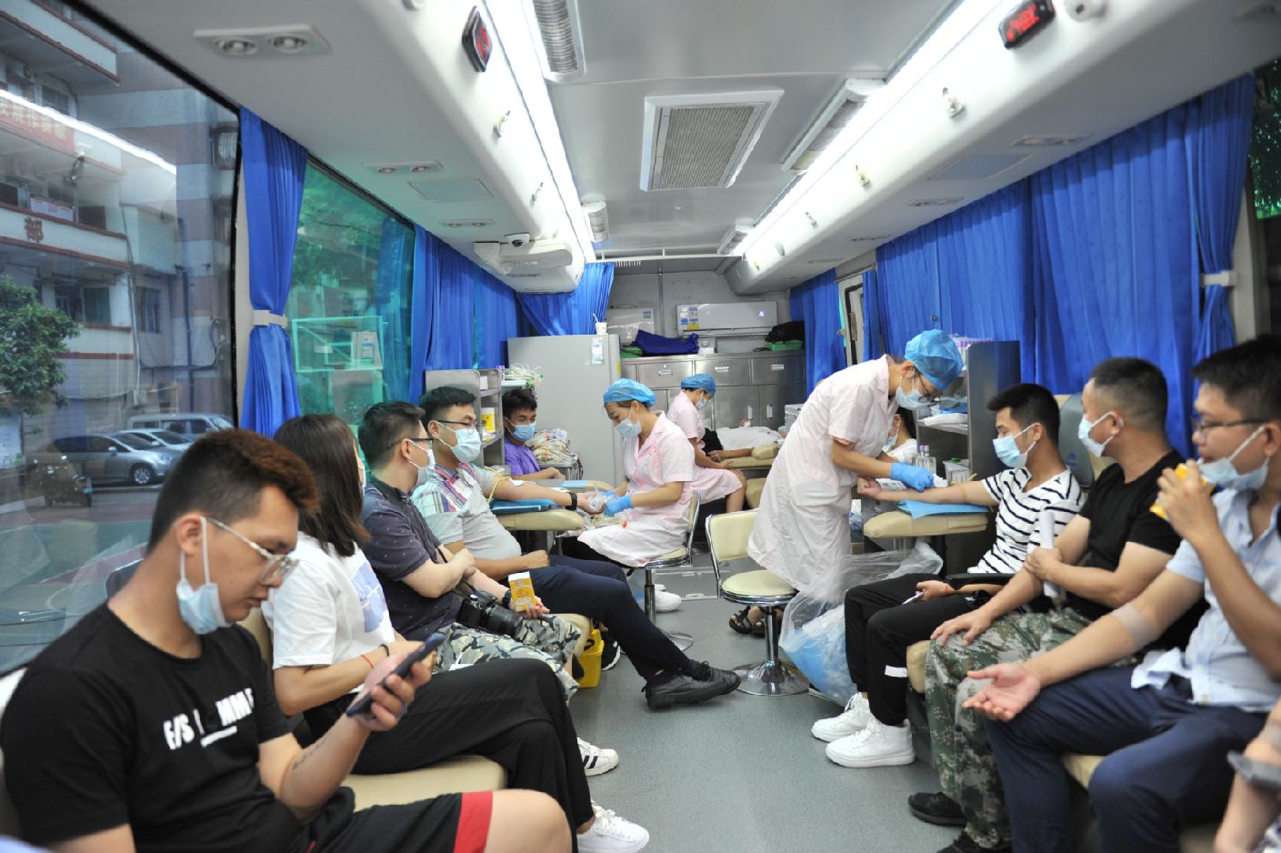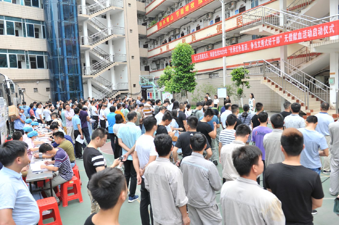 为庆祝中国共产党建党99周年,纪念习总书记对黄文秀同志先进事迹作出重要指示一周年,6月30日上午,由百色市中心血站协调右江区直属机关工委和右江区两新组织党工委联合举办的“传承红色基因,争当文秀式好干部”无偿献血活动在右江区人民政府大院举行。