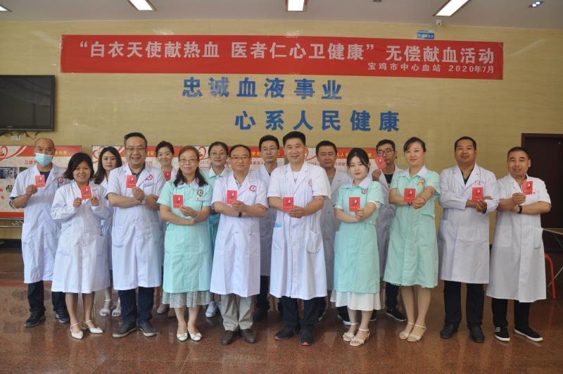 7月2日上午,在宝鸡市中心血站一楼大厅,血站组织开展了以 “白衣天使献热血 医者仁心卫健康”为主题的无偿献血活动。