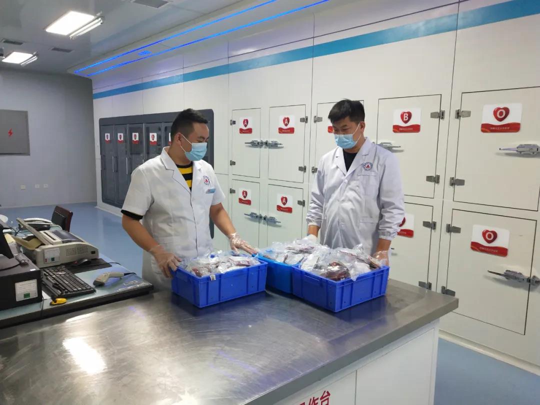 采血车上护士有条不紊的对献血者做初筛、采集,冷链运送司机在第一时间将采集到的血液送回血站,成分制备科将待检血液进行储存、分离、制备等一系列操作,同时检验科也在接到血液标本的第一时间对标本进行了核酸实验。血站工作人员紧张有序的进行着自己的工作。