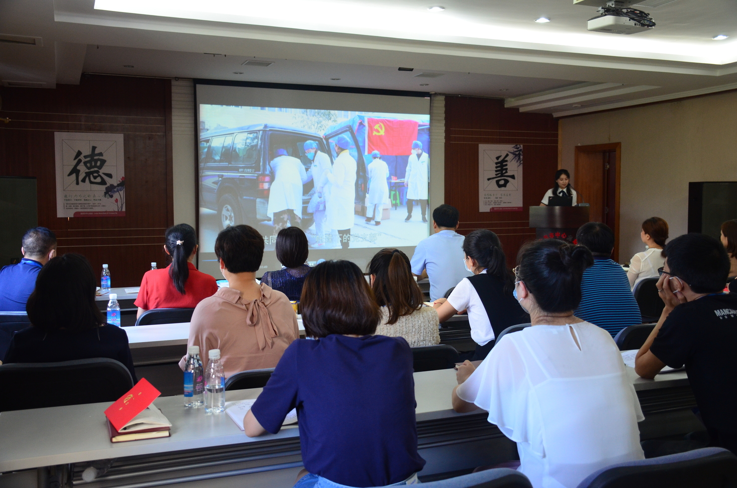 本次活动邀请了宜昌市第三人民医院纪检监察室牵头负责人、临床第二党支部组织委员余竞明同志为大家授课,她以《党旗引领 用责任筑起疫情防控的坚固长城》为主题,为大家讲述市第三人民医院抗疫期间医护人员的感人事迹。