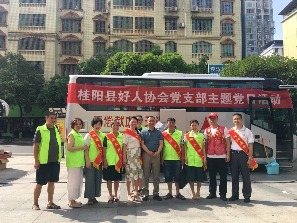 7月1日,桂阳县好人协会与郴州无偿献血志愿者服务队桂阳分队共同发起主题为“我用热血为党旗添光彩”的献血活动,向党的生日献礼。
