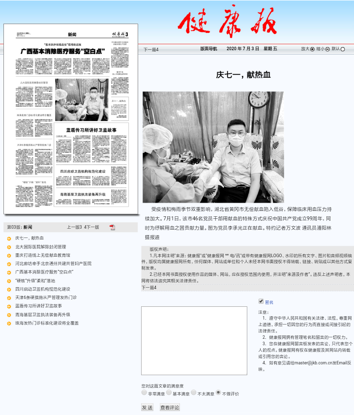 党员带头撸袖献血 涓涓热血献礼“七一”