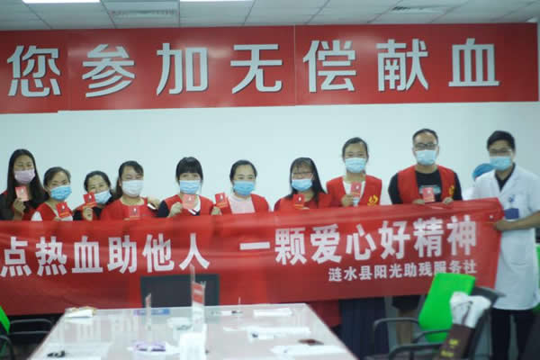6月27日上午,涟水县阳光助残服务社组织无偿献血志愿者来到市中心血站涟水采血点,他们用自己的热血助力生命,传递爱心!涟水采血点的工作人员对志愿服务队队员们进行认真的体检,从征询、体检、初筛到献血,过程井然有序。带着体温的血液从他们的体内流出,一袋袋贮血袋被鲜血填满的刹那间,一张张质朴的脸上都露出了微笑,传递着无偿献血志愿服务队的大爱真情。