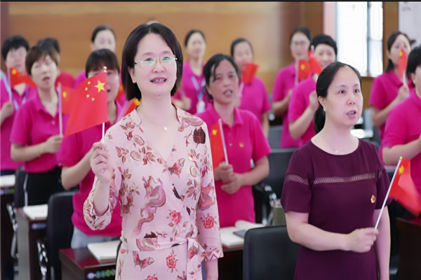 最后,一首铿锵有力的“没有共产党就没有新中国”唱响全场,全体血站人挥舞着小红旗,高唱对党的热爱之情。