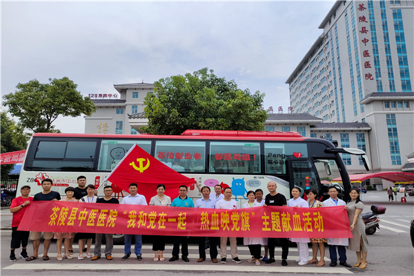 7月1日,茶陵县中医院开展“我和党在一起 热血映党旗”为主题的献血活动,全院党员、医护人员踊跃参与,以关爱生命、奉献热血的实际行动庆祝党的生日。