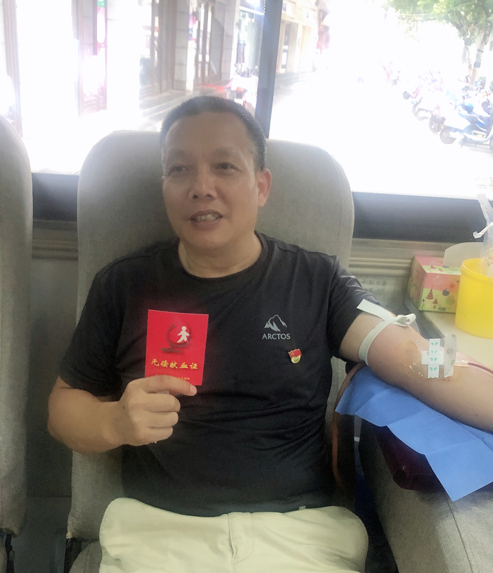 曹小明副会长这是第三次献血,他想着现在疫情还未结束,献血人数减少,他果断献出400毫升的血液。