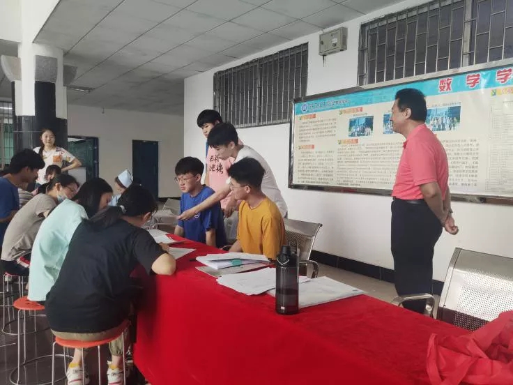 活动期间,数学学院党总支副书记易政群前来关心献血工作。易书记仔细询问了目前献血工作的有关进展,并关切询问献血志愿者的身体状况,叮嘱他们一定要多注意休息,以确保往后正常学习生活的进行。同时,数学学院团总支副书记程周与团学分会执行主席向俊峰一同参与献血,并合影留念。此外,参与填写志愿献血信息表的志愿者络绎不绝,使活动热度不断升温。