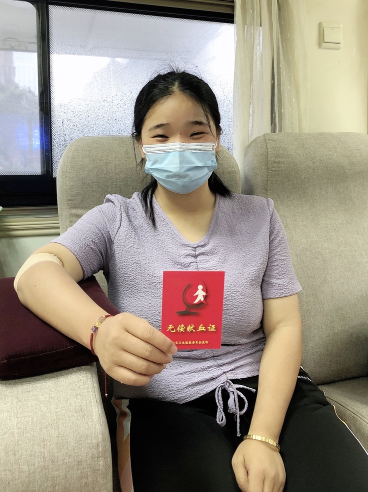 她是一位固定献血者,已经累计献血1200毫升了,她还有另一个身份,是一位新晋的妈妈,一直都想着捐献热血的她说:终于等到孩子满一岁了,所以我就来献血了。这样的天气还想着无偿献血,我们都被她感动了!她特别开朗,顺利的捐献了400毫升。