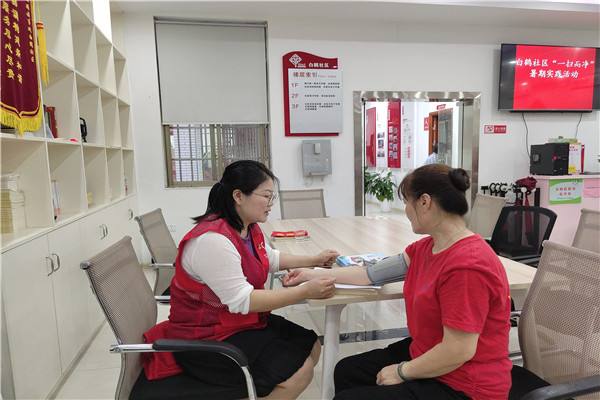 活动现场,党员们热情耐心地接待前来咨询的社区居民,为他们测量血压,并针对大家不同的健康状况,给予合理的指导。同时,还就疫情防控常态化的要求和卫生健康知识、使用公筷公勺、推行文明餐桌、垃圾分类等方面知识向居民进行宣传和普及。